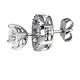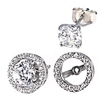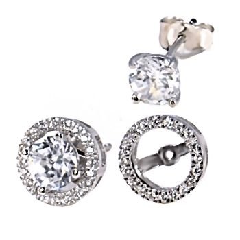 Sterling Silver Removeable 10mm Halo Earring Jacket with 6mm Russian Ice on Fire Diamond CZ Gemstone Cast Basket Stud Earring Set, Kristina, 1.70 carats by 1000 Jewels