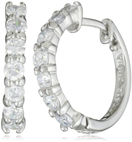 Sterling Silver Simulated Diamond Hoop Earrings (0.6″ Diameter) by Amazon Curated Collection