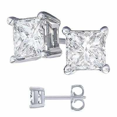 Nickel Free Platinum Rodium Finish Cubic Zirconia Princess Cut 925 Sterling Silver Stud Earrings. 4 Carat Total Weight Princess Cut Cubic Zirconia. 2 Carat Each Stone by hypoallergenic earrings