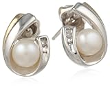 S&G Sterling Silver and 14k Yellow Gold 5mm Freshwater Cultured Pearl and Diamond Earrings (0.01cttw, I-J Color, I3 Clarity) by Amazon Curated Collection