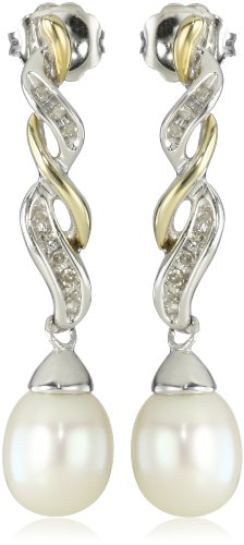 S&G Sterling Silver and 14k Yellow Gold Freshwater Cultured Pearl and Diamond Drop Earrings (0.06 cttw, I-J Color, I3 Clarity) by Amazon Curated Collection