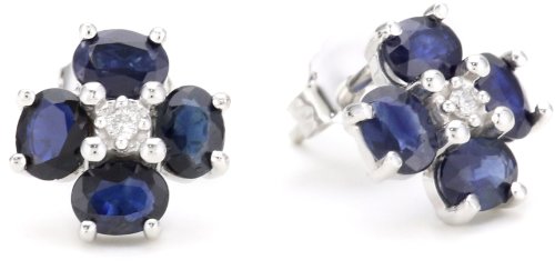 14k White Gold Blue Sapphire Flower Earrings with Diamond-Accent by Amazon Curated Collection