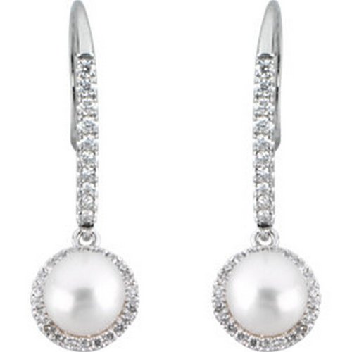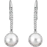 IceCarats Designer Jewelry Freshwater Cultured Pearl And Diamond Earrings 14K White Gold by IceCarats