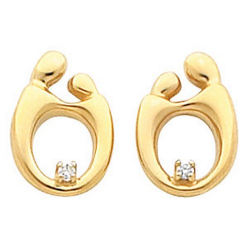 IceCarats Designer Jewelry Mother And Child Diamond Post Earring 14K Yellow Gold by IceCarats