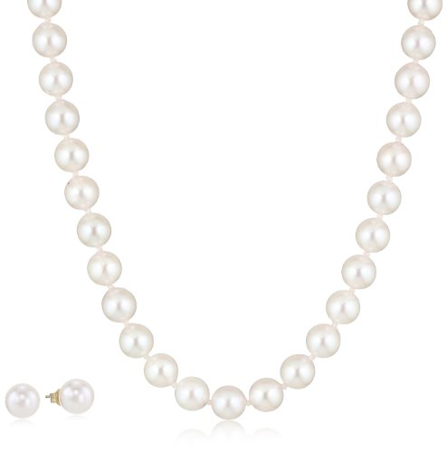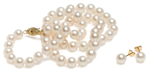 14k Yellow Gold Akoya Cultured Pearl 6.5-7mm Necklace and Stud Earring Set by Amazon Curated Collection