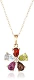 Yellow Gold Plated Sterling Silver Multi-Gemstone Flower Earrings and Pendant Necklace Set, 18″ by Amazon Curated Collection