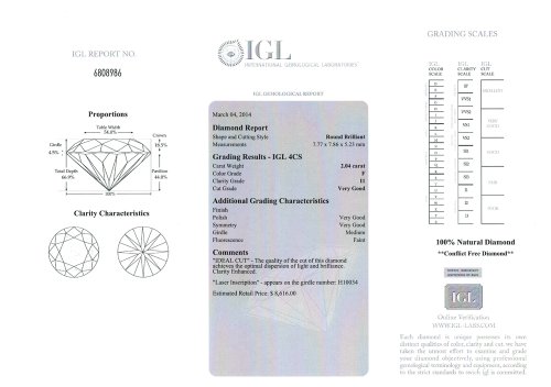 DescriptionCertified 2.04 Carat Natural Free Diamond, excellent Cut, Spherical Brilliant Cut, Colour F, I1 Readability. All of our stones are professionally inspected and certified. Lifetime Enhancement Guarantee: We stand via every stone we sell and Provide free replacement if you happen to ever find a defect. Moral Sourcing: We use the Kimberly process and make certain all our diamonds are battle-free. Satisfaction Assured: Return within 30 days for a full refund. Laser inscribed with certification quantity for simple identification and delivered security. All Diamonds are Certified. For over 40 years, with a world presence in Belgium, the big apple, la and Tel Aviv, BrilliantRocks has equipped the highest quality diamonds to jewellery sellers and jewelers throughout the globe and now you too can enjoy the choice of diamonds straight from the source. With completely no interference from 0.33 events, we obtain the Pure diamonds and proceed to cut & polish them in-house with a staff of specialists and the most technologically developed machinery. Then, the diamonds obtain certification from a certified agent, are approved by means of our team and can be right away shipped off.