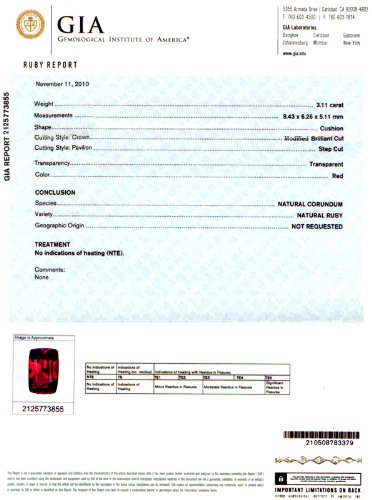 3.11 Carat Untreated Loose Ruby Cushion Cut (GIA Certificate) by GemsNY