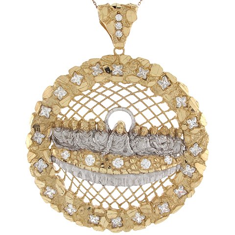 Description14k Real Two Tone Gold White CZ Accents 9.03cm x 7.34cm Last Supper Pendant – Jewellery Liquidation Number: P4T6440ZW0 – Chain now not included