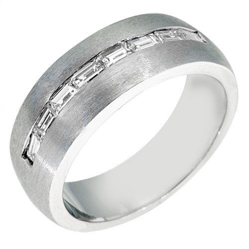 DescriptionThis Pretty treasure is entirely hand crafted in pure 14kt white stable gold that’s elegantly computing device brushed for a matte appear. The band is channel set with Eight baguette Minimize diamonds weighing approximately 1.00 Carat. The Entire stones are a blinding white H-I colour and piercing VS2-SI1 readability. This band is ideal for an engagement or marriage ceremony ring.