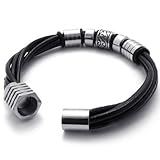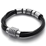 8″, KONOV Jewelry Genuine Leather Biker Mens Bracelet with Magnetic Stainless Steel Clasp, Color Black Silver, Length 8 inch (with Gift Bag) by KONOV Jewelry