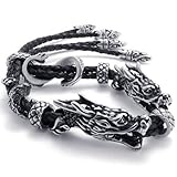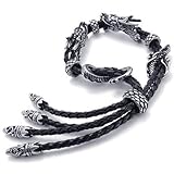 KONOV Jewelry Leather Stainless Steel Double Dragon Mens Bracelet – Color Black Silver (with Gift Bag) by KONOV Jewelry