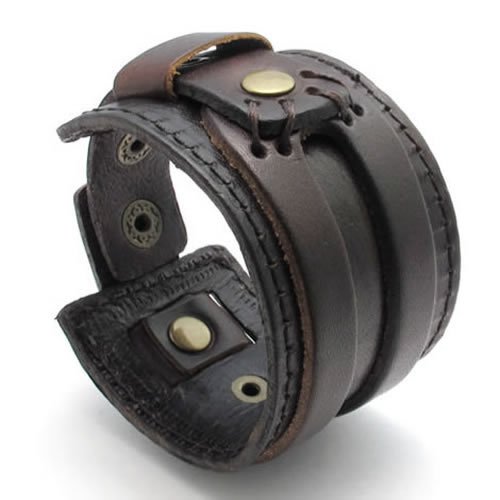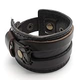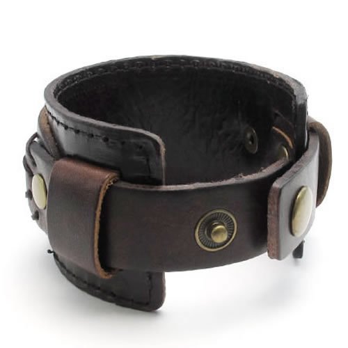 KONOV Jewelry Wide Genuine Leather Mens Bangle Cuff Bracelet, Punk Rock Style, Fits 7.5″ to 8.5″, Color Brown (with Gift Bag) by KONOV Jewelry
