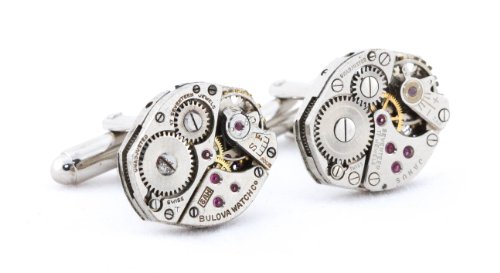 Very distinctive cufflinks. I hand crafted the cufflinks using Particular silvertone watch actions. The watch movements are complete and are a close to similar match.