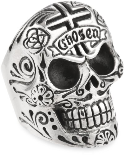 King Baby Men's Large Skull Ring with Chosen Cross Detail, Size 10 by King Baby