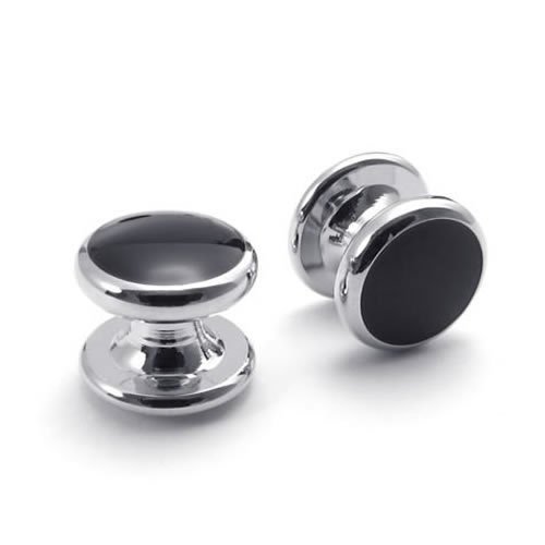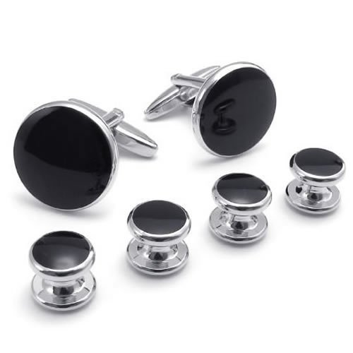 KONOV Men's Classic Round Tuxedo Cufflinks and Studs Set, with Black Center and Silver Color Edge (with Gift Bag) by KONOV Jewelry