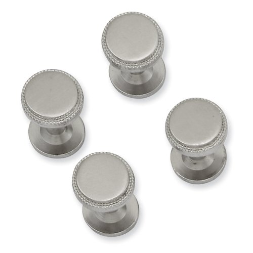 Rhodium-plated Four Piece Florentined Beaded Tuxedo Studs by Jewelry Adviser Beads