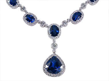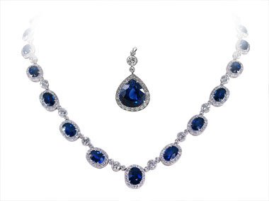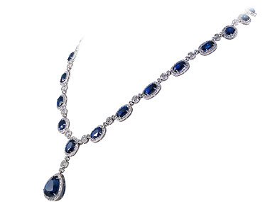 This wonderful necklace could be a excellent addition to your evening gown! It Is manufactured from platinum and lines oval shaped superb sapphires, 29.43ct in Total. There Is A detachable pendant with a pear shaped 5.95ct sapphire gemstone. It Can Be worn with the necklace or separate. Every sapphire is surrounded by using small spherical lower diamonds. There are more stones set in bezel connecting the sapphire embellished important points. Total diamond weight of the whole necklace is 4.17ct. Take A Look At our assortment of bijou to find a matching pair of jewelry!