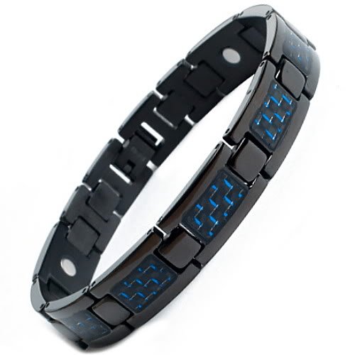 Willis Judd New Mens Black Titanium Magnetic Bracelet with Blue Carbon Fiber Insets Free Link Removal Tool by Willis Judd