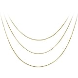 18k Yellow Gold Plated Sterling Silver 18″, 20″ and 24″ Box Chain Set of Three Necklaces by Amazon Curated Collection