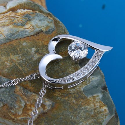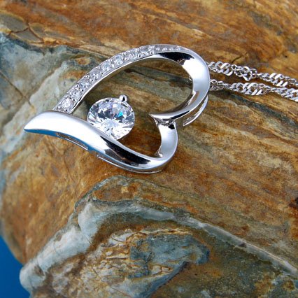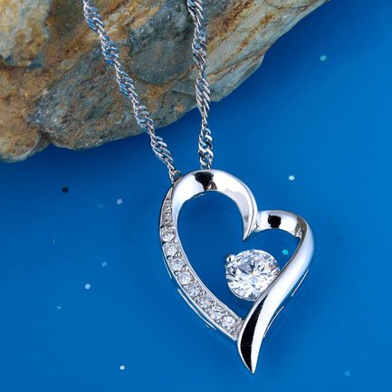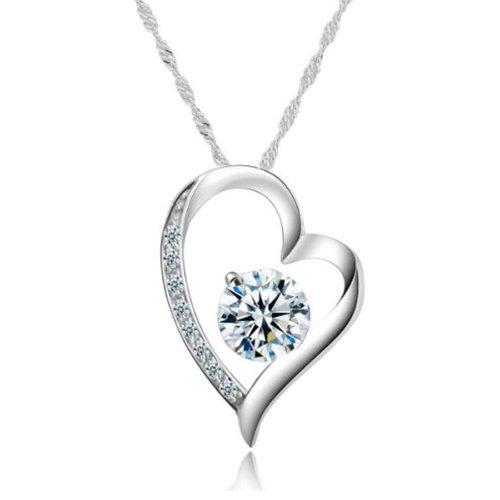 Chaomingzhen White Gold Plated 925 Sterling Silver Heart&arrow Cubic Zirconia Diamond Accent 8 Stone Heart Shaped Pendant Necklace for Women Fashion Jewelry or for Girlfriend Chain18″ by Chaomingzhen