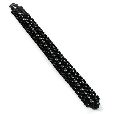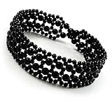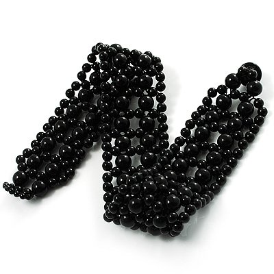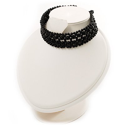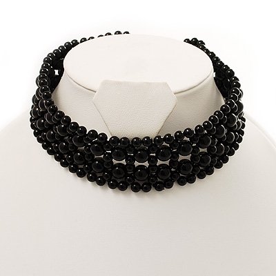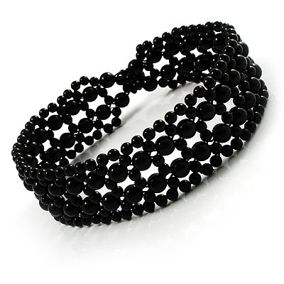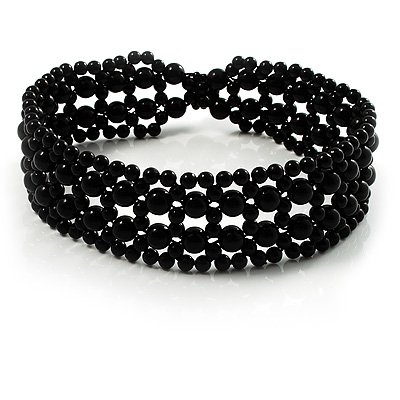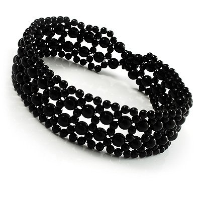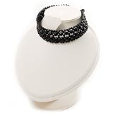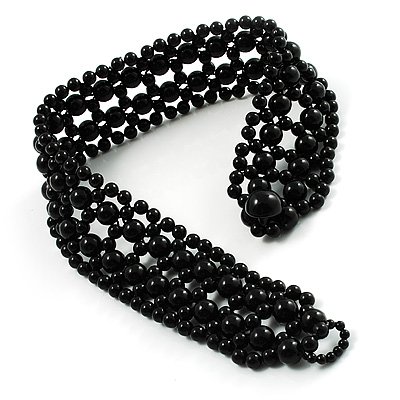 Strengthen any outfit with this Black Beaded Flex Choker Grownup. Featuring a flex choker model, product of various shapes and sizes polished jet black, plastic beads, providing a Victorian look. The necklace measures about 28cm in length and 3cm in width, fastens with button and loop closure. Stretchy design promises a versatile fit.