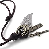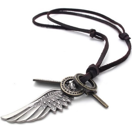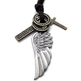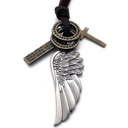 KONOV Jewelry Vintage Style Angel Wing Cross Pendant Genuine Leather Necklace Chain (with Gift Bag) by KONOV Jewelry