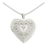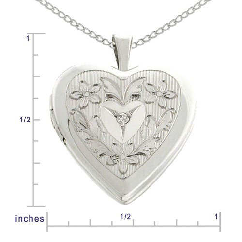 Sterling Silver Diamond Accent Flowers and Leaves Heart Locket Pendant Necklace, 18″ by Amazon Curated Collection