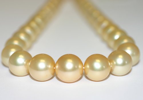 This gorgeous Golden South Sea Pearl Necklace for probably the most discerning of tastes, with 100% natural Color and luster, lets you seem to be your highest! A Beautiful choice to impress, you'll really feel elegant at every social gathering. As you’re feeling the cool, smooth touch of exclusive-High Quality pearls in opposition to your skin, you'll love sporting them for many years to come! – Proven: Golden South Sea Pearl Necklace Strand Merchandise #: 2008Grade/Total Quality: AAALuster: Very HighSurface Quality: CleanSize: 11.2-15.2mmShape: RoundBody Color: GoldenNumber of Pearls: 33
