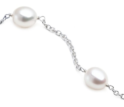 Bling Jewelry Sterling Silver Tin Cup White Freshwater Pearl Station Bracelet