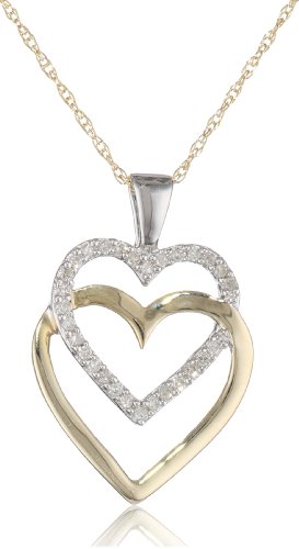 10k Yellow Gold Double Hearts with Diamonds Pendant Necklace (0.10 cttw, I-J Color, I2-I3 Clarity), 18″ by Amazon Curated Collection