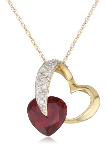 10k Yellow Gold Heart Garnet and Diamond Pendant Necklace, 18″ by Amazon Curated Collection