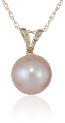 14k Yellow Gold AA 7.5x8mm Pink Freshwater Cultured Pearl Pendant Necklace, 18″ by Amazon Curated Collection