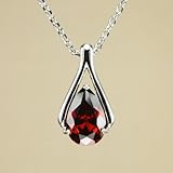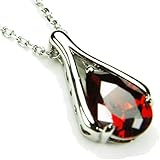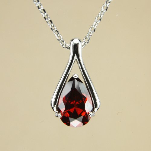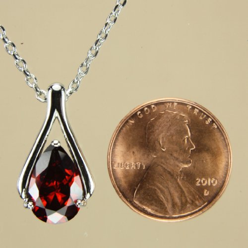CZ-Teardrop Necklace, Garnet-Colored CZ, 18″