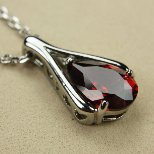 CZ-Teardrop Necklace, Garnet-Colored CZ, 18″ by Pink Mississippi