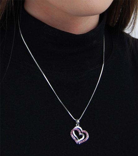Right Here is an lovable glowing Purple crystal double Heart Charm pendant necklace. Pendant measures roughly 3/Four” in Size. It comes on a fantastic silvertone 16″ snake chain. This elegant piece is ideal for Reward giving or for your self. Your necklace will come to you in a foil Present Field. Box may be a distinct coloration than the one proven.