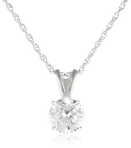 Platinum Plated Sterling Silver Round-Cut Cubic Zirconia Pendant Necklace, 18″ by Amazon Curated Collection