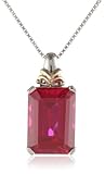 S&G Sterling Silver and 14k Yellow Gold Emerald Cut Created Ruby Pendant Necklace, 18″ by Amazon Curated Collection