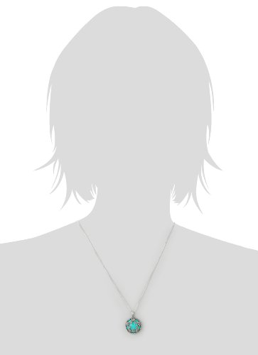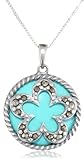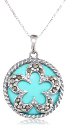 Sterling Silver Oxidized Turquoise and Marcasite Flower with Twisted Edge Round Pendant Necklace, 18″ by Amazon Curated Collection