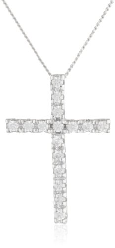 Sterling Silver Swarovski Cubic Zirconia Cross Pendant Necklace, 18″ by Amazon Curated Collection