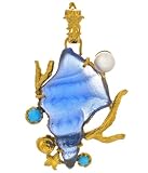 DescriptionTagliamonte Sterling Silver, Yellow Gold Plated 1.8″ Drop Blue Venetian Glass Carved Shell, Turquoise and Cultured Freshwater Pearl Pendant with 18″ Chain, Free Shipping