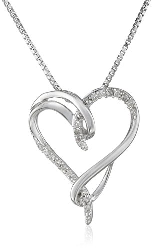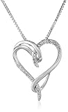 XPY Sterling Silver White Diamond (1/10cttw, I-J Color, I2-I3 Clarity) Interlocking Heart Pendant Necklace, 18″ by Amazon Curated Collection