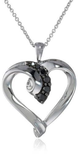 Sterling Silver Black Diamond Heart Pendant Necklace (1/4 Cttw, I-J Color, I2-I3 Clarity), 18″ by Amazon Curated Collection
