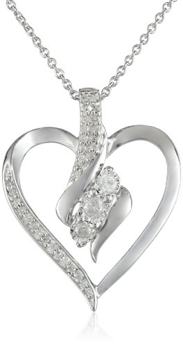 Sterling Silver Diamond Heart Pendant Necklace (1/4 cttw, I-J Color, I2-I3 Clarity), 18″ by Amazon Curated Collection