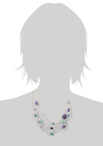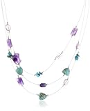 Sterling Silver and Stainless Steel 3-Row Illusion Turquoise and Amethyst Necklace, 16+3″ Extender by Amazon Curated Collection
