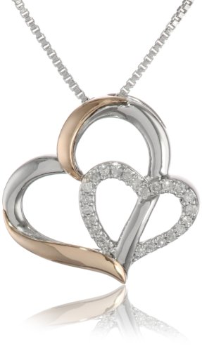XPY 14k Rose Gold and Sterling Silver Double Heart Pendant Necklace, 18″ (1/10 cttw, I-J color, I2-I3 clarity) by Amazon Curated Collection