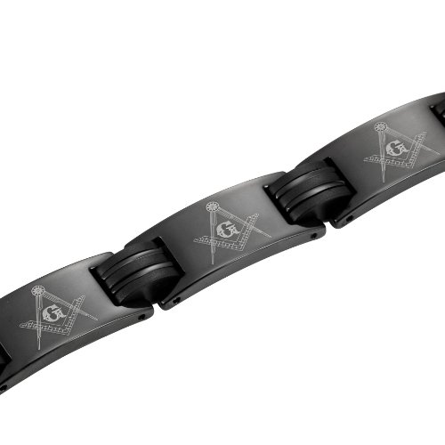 MasonicMan New Mens Black Titanium Masonic Magnetic Bracelet In Velvet Gift Box + Free Link Removal Tool by MasonicMan