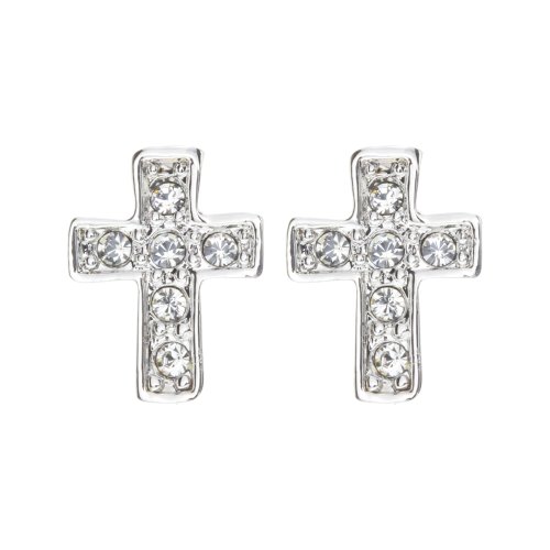 Magic Collection 18k Yellow/White Gold Plated Cubic Zirconia Cross Design Stud Earrings (18k White Gold Plated) by Magic Collection