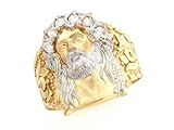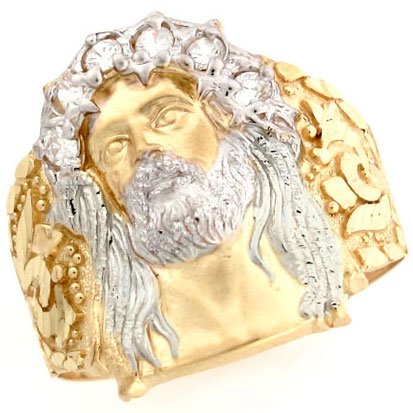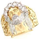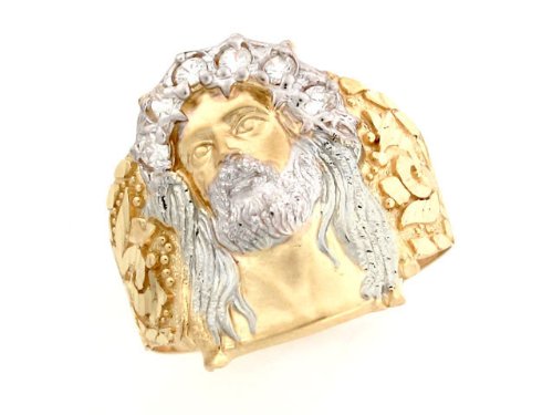 10k Two Tone Gold White CZ Jesus Religious Mens Ring by Jewelry Liquidation