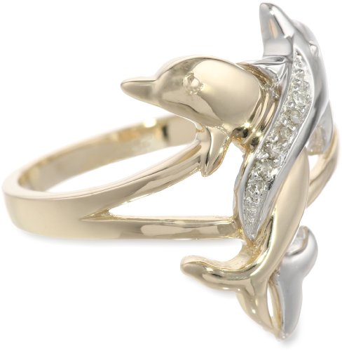 10k Two-Tone Gold Diamond-Accent Intertwined Dolphin Ring, Size 8 by Amazon Curated Collection